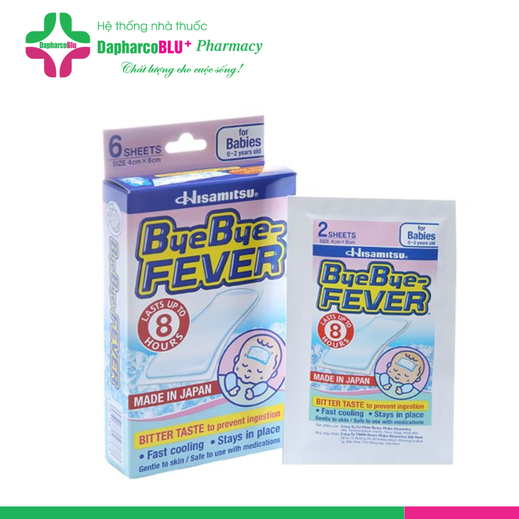 Miếng dán hạ sốt Bye Bye-Fever giúp hạ sốt, làm mát và giảm nhiệt tạm thời hiệu quả.
