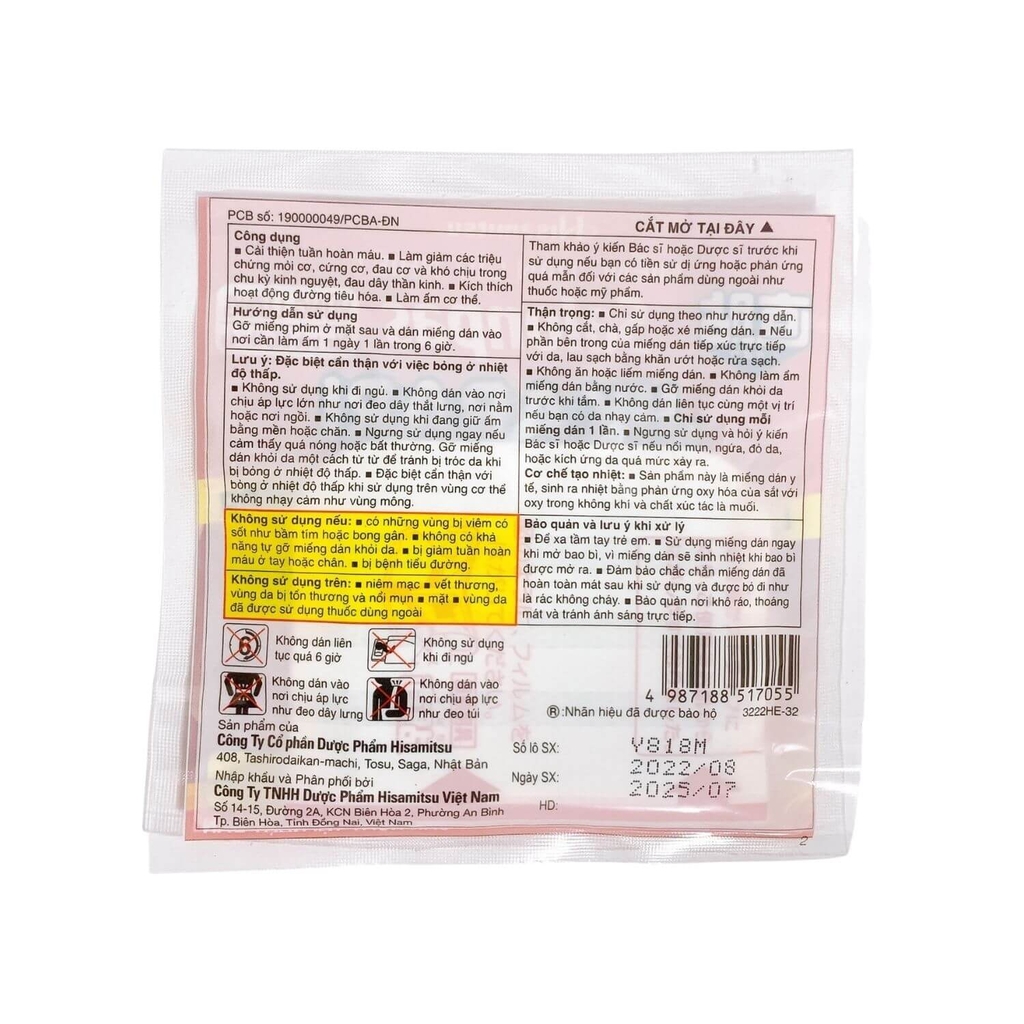 Sản phẩm này là miếng dán y tế, sinh ra nhiệt bằng phản ứng oxy hoá của sắt với oxy trong không khí và chất xúc tác là muối.